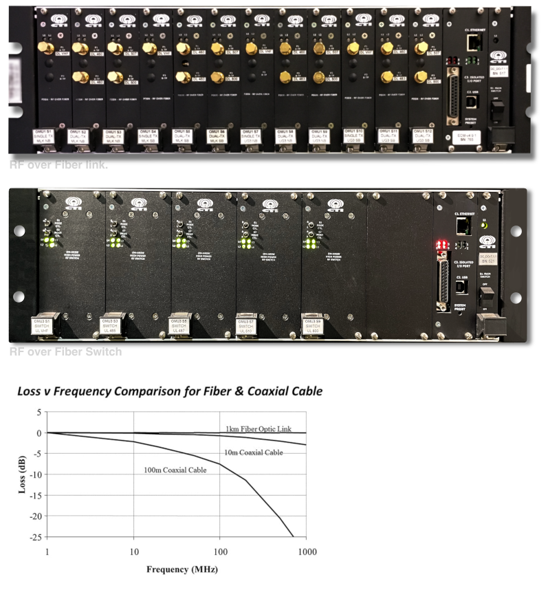 FOD RF-over-Fiber links are ideal for long distance transmission of RF signals over single-mode fiber-optic cables.